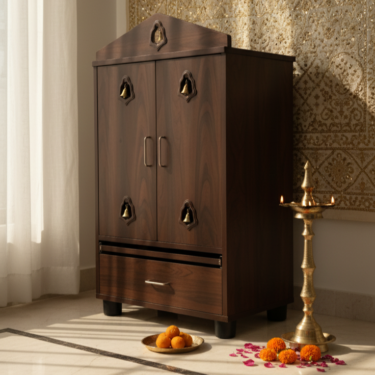 Beautiful Pooja stands for Chennai homes. Multiple designs with drawers and shelves for pooja essentials.