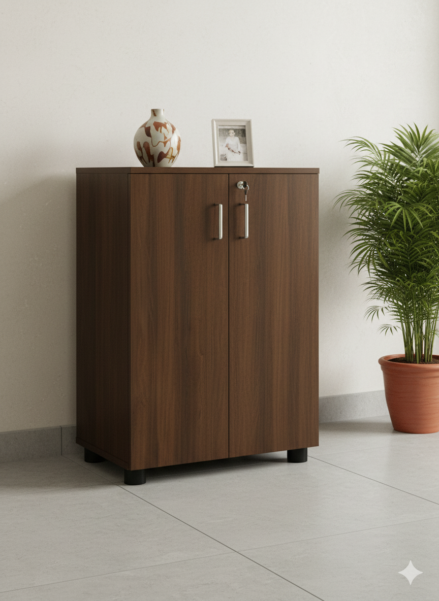 Transform your home organization with this versatile two-door storage cabinet designed for modern Indian homes. Perfect blend of style and functionality for any room requiring secure storage solutions.